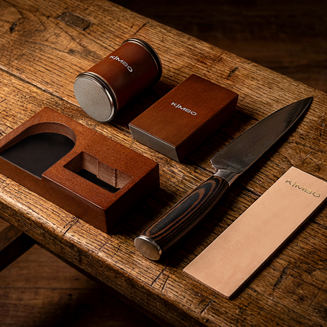 Unlock pro-level sharpening with the Kimbo Starter Set — your all-in-one solution for sharpening, honing, and maintaining razor-sharp blades. Designed for home cooks, outdoor adventurers, and anyone who demands precision from their knives. This exclusive bundle includes everything you need to keep your edge sharp and ready: